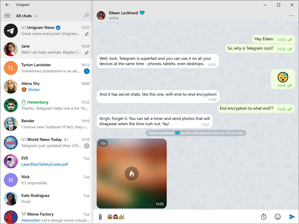 unigram is another great client for the telegram web which is now available for windows only. what unigram offers is somewhat different.